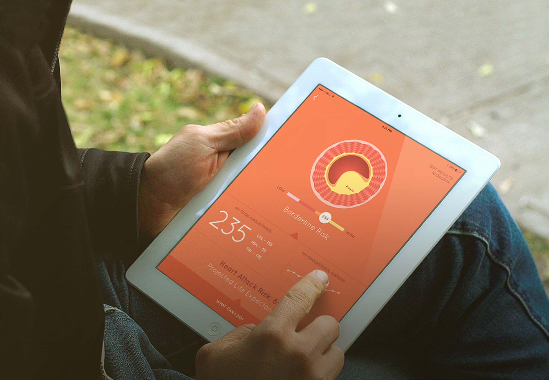 Then one year, the experience was different. Mark’s lab results were no longer on paper — and they were no longer numbers and acronyms. Instead, they were displayed as an interactive graphic on his tablet. Even with no medical background, Mark immediately understood everything; there was no shrugging away what was happening to his arteries. Vague and imaginary until now, cholesterol was suddenly a very clear threat. For the first time, Mark was genuinely motivated to change what he saw on the screen.